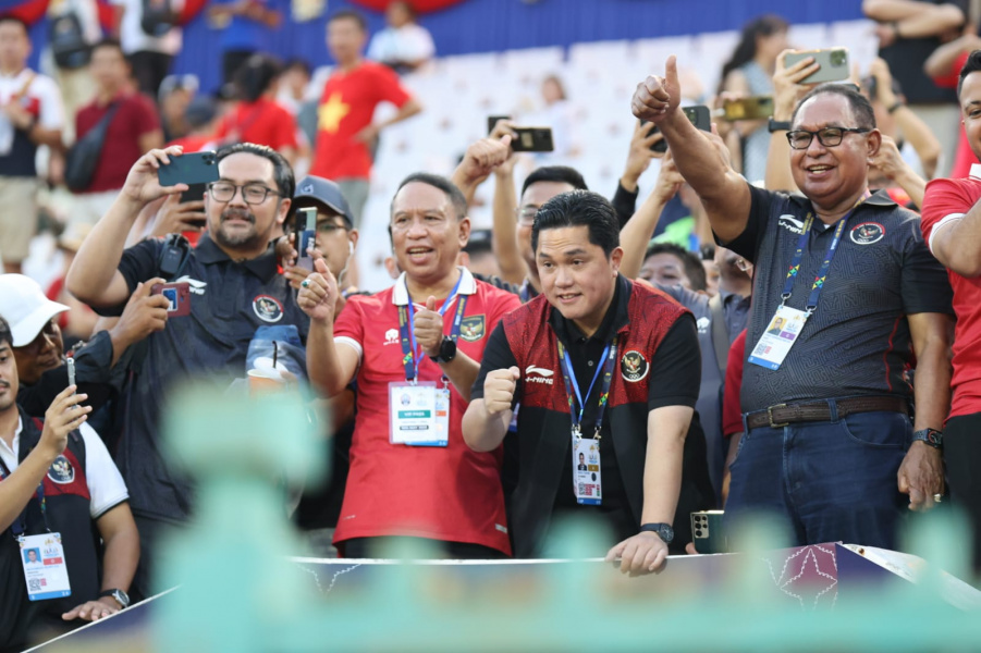 “Alhamdulillah, penantian kita selama 32 tahun untuk menyaksikan tim sepak bola Indonesia juara terwujud hari ini. Terima kasih kepada seluruh pemain, pelatih, dan ofisial. Kami persembahkan emas ini bagi seluruh rakyat Indonesia,” ujar Erick seusai laga final, Selasa (16/5).