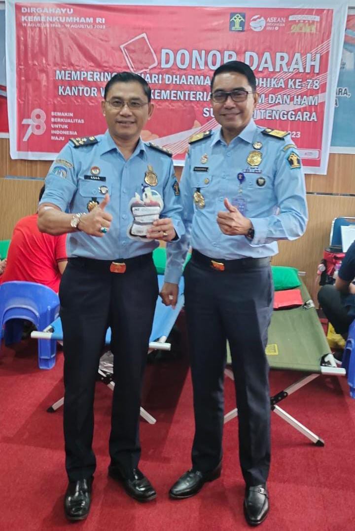 Merdekami.com _Kantor Wilayah Kementerian Hukum dan HAM Sulawesi Tenggara (Kanwil Kemenkumham Sultra) gandeng Unit Donor Darah Palang Merah Indonesia (UDD PMI) Provinsi Sulawesi Tenggara laksanakan bakti sosial Donor Darah di aula II Kanwil, Senin (17/7/2023).