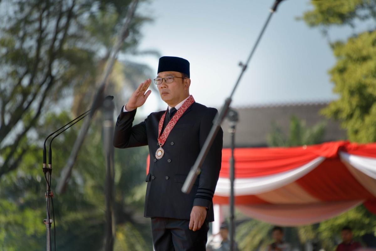 Gubernur Jawa Barat Ridwan Kamil memimpin langsung upacara tersebut dengan mengenakan pakaian adat Sunda termasuk para bupati dan wali kota yang hadir.