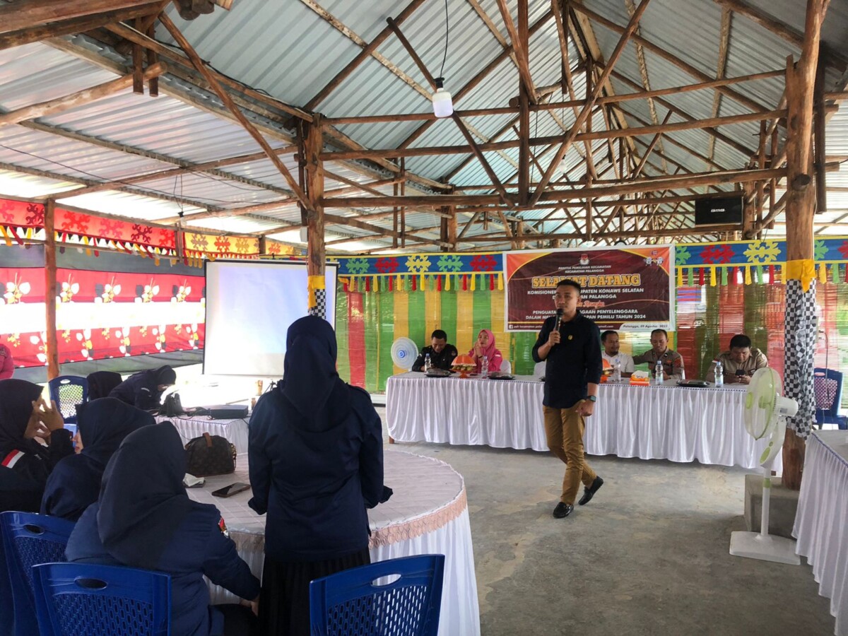 Acara tersebut menghadirkan anggota Komisi Pemilihan Umum (KPU) Konsel, Eko Hasmawan Baso sebagai pembicara. Turut hadir pula perwakilan pemerintah kecamatan, Polsek setempat, Panwascam Kecamatan, PKD, dan pihak terkait lainnya. Serta ratusan Panitia Pemungutan Suara (PPS) se Kecamatan Palangga sebagai peserta.