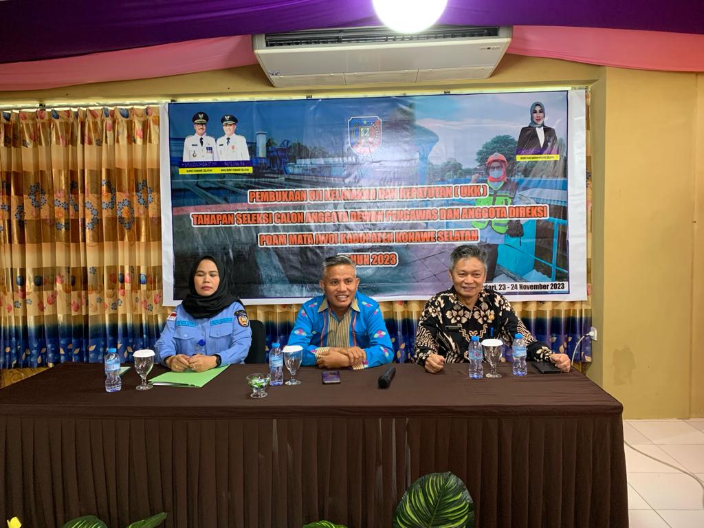 Merdekami.com _Pemerintah Daerah (Pemda) Konawe Selatan (Konsel) melalui Bagian Ekomomi Sekretariat Daerah (Setda) melaksanakan Uji Kelayakan dan Kepatutan (UKK) tahapan seleksi calon Anggota Dewan Pengawas (Dewas) dan Anggota Direksi Perusahaan Daerah Air Minum (PDAM) Mata Iwoi, di Qubah Hotel 9 Kota Kendari, Kamis (23/11) 2023.