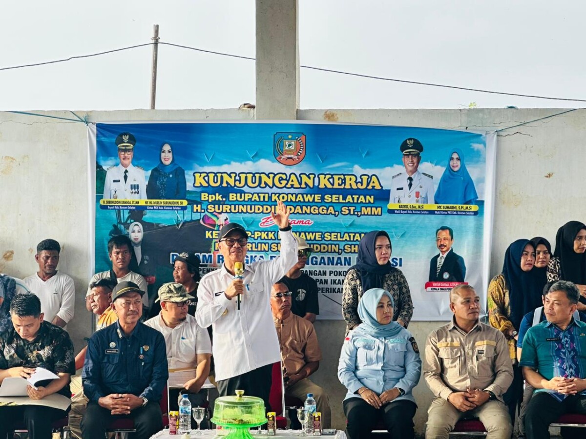 Merdekami.com _Pemerintah Kabupaten Konawe Selatan (Konsel) melalui Dinas Perikanan terus mendorong daerah pesisir yang potensial untuk mengembangkan produksi ikan semakin meningkat. Melihat besarnya potensi tersebut, Bupati Konsel H Surunuddin Dangga, didampingi Sekda Hj St Chadidjah, Kadis Perikanan Wayan Dharma, Camat Tinanggea Nurwan, Lurah Tinanggea, dan Sejumlah Kepala OPD.