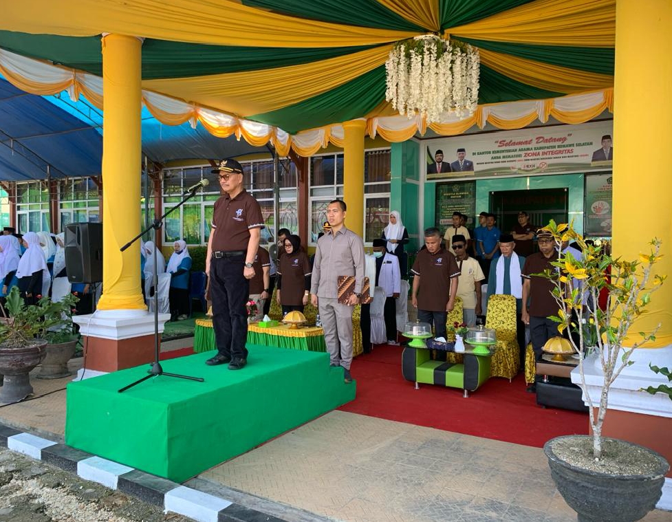 Sambutan Menteri Agama Yaqut Cholil Qoumas ini disampaikan Bupati Konawe Selatan H Surunuddin Dangga ST MM saat memimpin Apel Peringatan HAB ke-78 Kemenag di Halaman Upacara Kantor Kemenag Konsel di Andoolo, Rabu (3/1/2024).