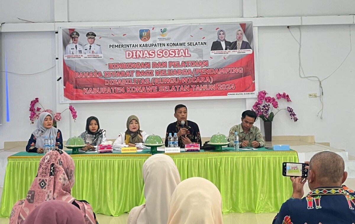 Kepala Dinas Sosial Konsel, Nurlita Jaya AS melalui Kepala Bidang Rehabilitasi Sosial, Mandar mengungkapkan pelatihan ini bertujuan untuk membekali keluarga dan pendamping penyandang disabilitas rungu wicara dengan keterampilan bahasa isyarat.