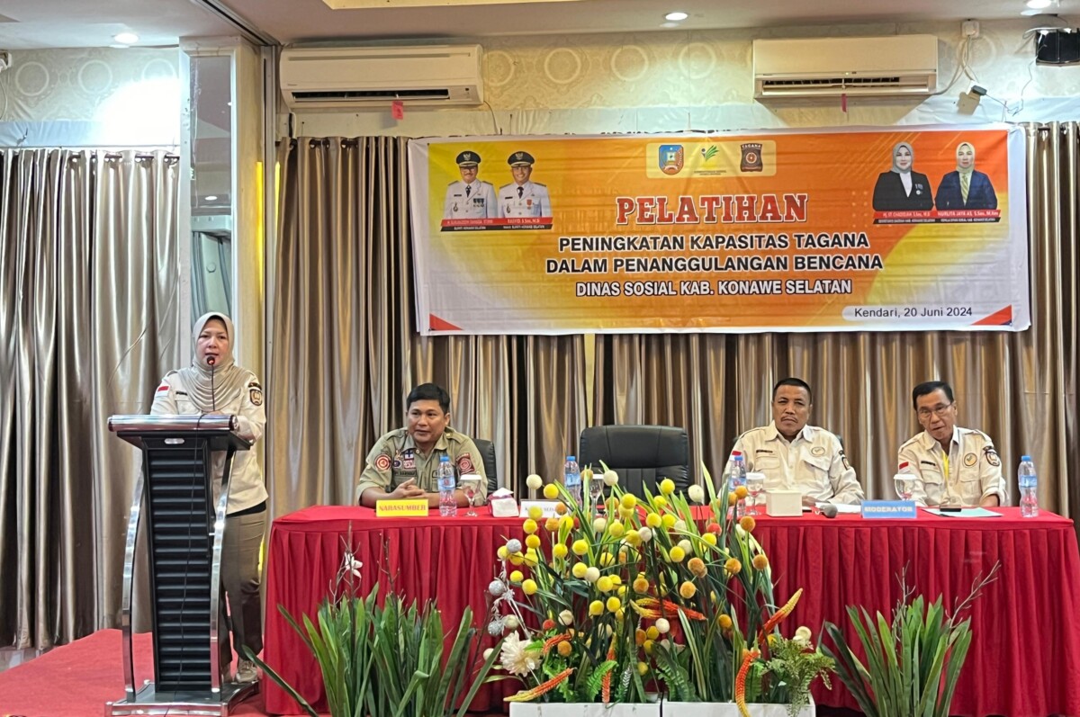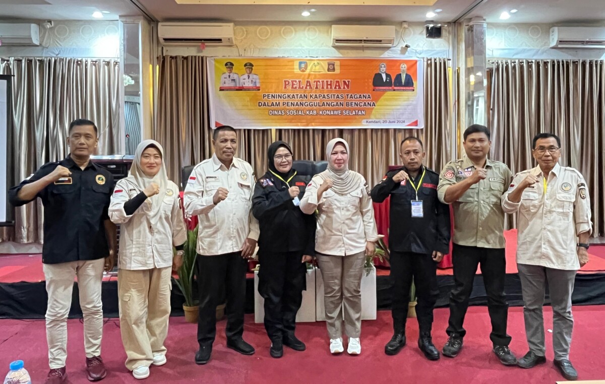 Merdekami.com – Dinas Sosial Kabupaten Konawe Selatan menggelar pelatihan peningkatan kapasitas bagi Taruna Siaga Bencana (Tagana). Pembukaan kegiatan di Hotel Fortune, Kendari pada Kamis 20 Juni 2024.
