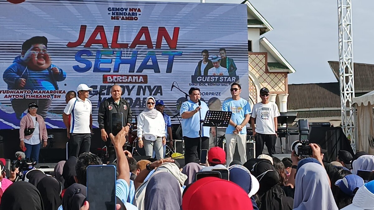 Merdekami.com – Puluhan ribu masyarakat Kota Kendari, Sulawesi Tenggara (Sultra), padati kawasan eks MTQ Kota Kendari, Sabtu 6 Juli 2024.