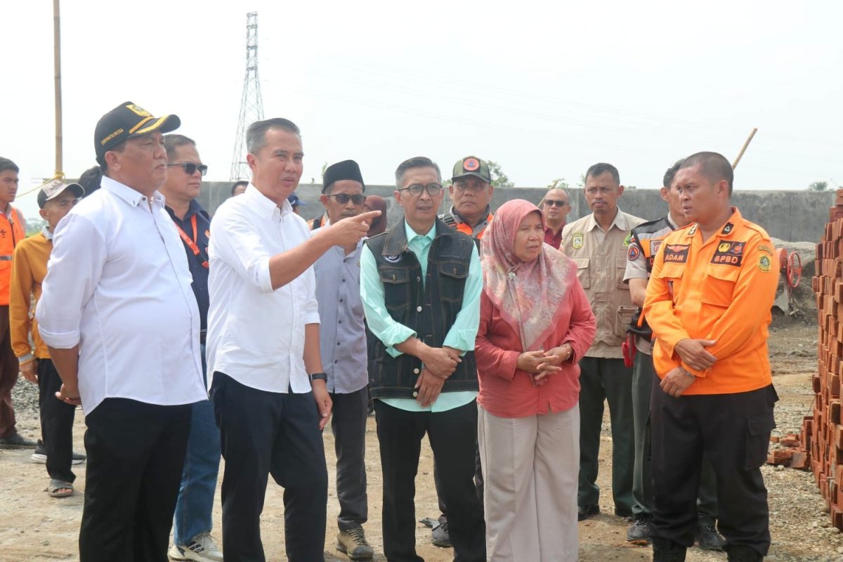 KABUPATEN BOGOR — Penjabat Gubernur Jawa Barat Bey Machmudin meninjau lokasi yang porak-poranda akibat bencana alam puting beliung di Desa Cimayang, Kecamatan Pamijahan, Kabupaten Bogor, Selasa (3/9/2024).