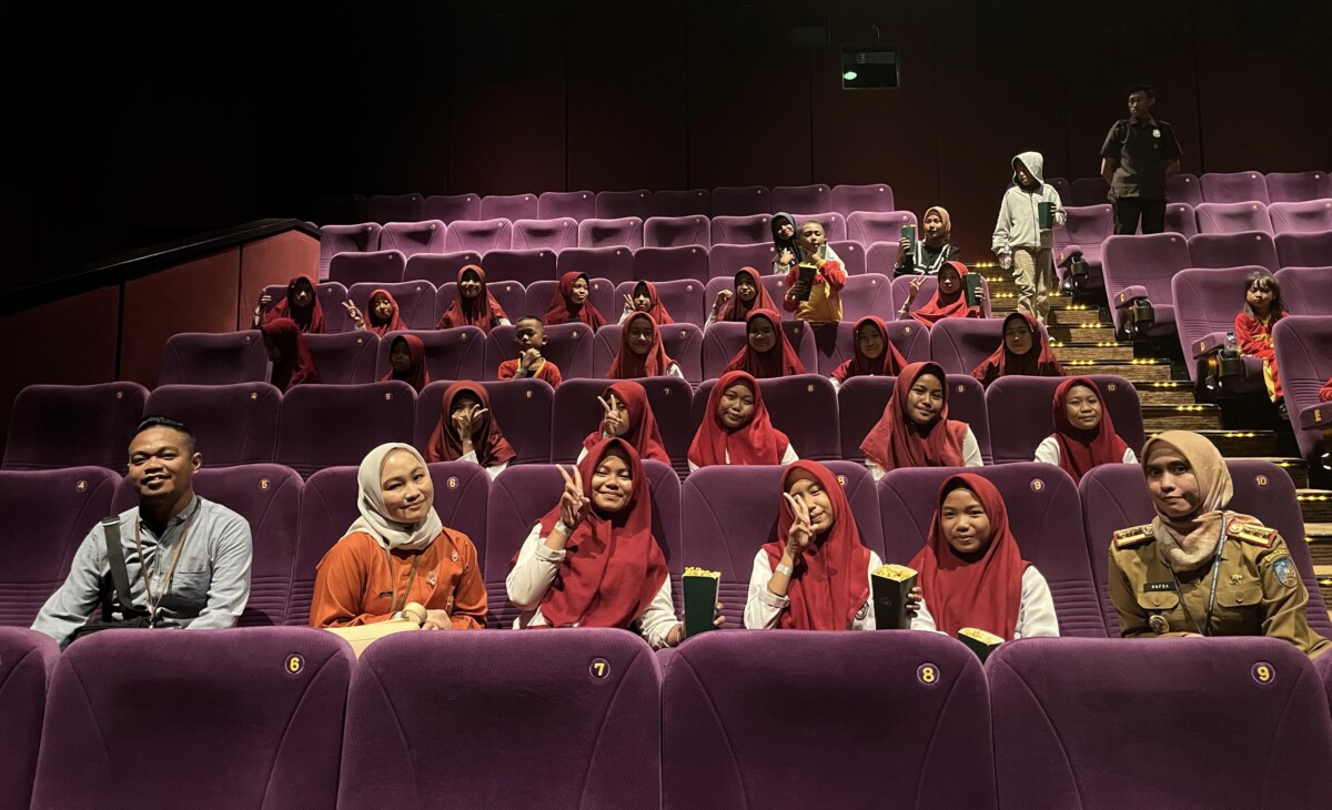 Pada pukul 12.30-14.12 WITA, para siswa diajak menonton film animasi The Wild Robot di Studio 2 XXI The Park Kendari.