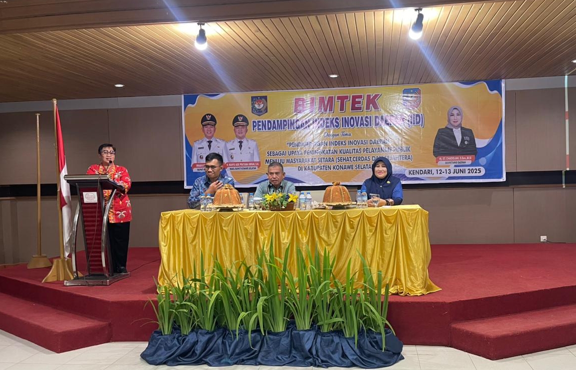 Konawe Selatan, Merdekami.com – Pemerintah Kabupaten Konawe Selatan melalui Badan Riset dan Inovasi Daerah (BRIDA) bekerja sama dengan Badan Strategi Kebijakan Dalam Negeri (BSKDN) Kementerian Dalam Negeri menggelar kegiatan Bimbingan Teknis Pendampingan Penginputan Indeks Inovasi Daerah (IID) Tahun 2025.