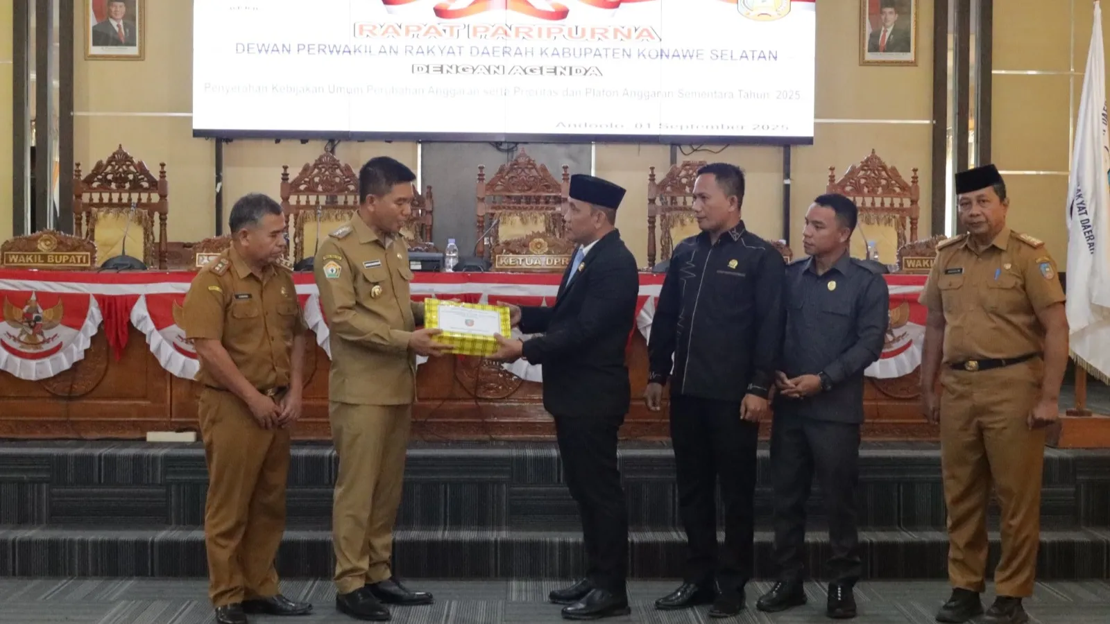 Konawe Selatan, Merdekami.com – Pemerintah Kabupaten Konawe Selatan (Konsel) di bawah kepemimpinan Bupati Irham Kalenggo terus menunjukkan komitmen untuk menghadirkan pembangunan yang berorientasi pada masa depan. Senin (1/9/2025), Bupati Irham secara resmi menyerahkan dokumen Rancangan Kebijakan Umum Perubahan Anggaran (KUPA) serta Prioritas dan Plafon Anggaran Sementara Perubahan (PPAS-P) Tahun Anggaran 2025 kepada Ketua DPRD Konsel, Hamrin, dalam rapat paripurna di Aula DPRD Konsel.